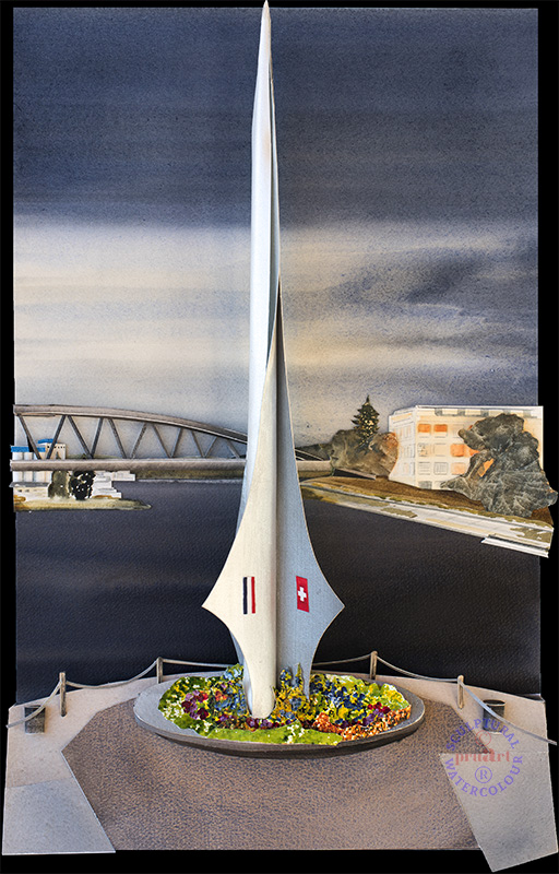 The point where Switzerland, Germany and France come together is marked on the Basle Swiss side by this unusual elegant sculpture. This international region centred on the city of Basle operates day to day as a united conurbation.