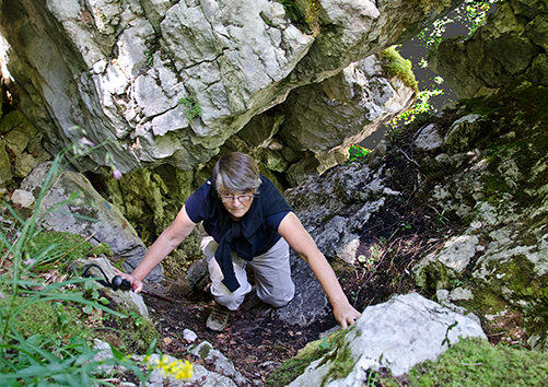 Above: Prue Bishop climbing out of the Guiers Mort Gorge through an exit crack.